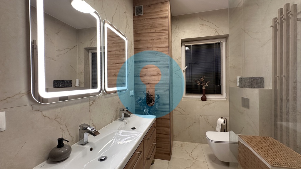Dom składa się z PARTER Wiatrołap/mały korytarz (2m2) Salon połączony z aneksem kuchennym, (z salonu prowadzi wyjście na taras 40 m2 - taras wykonany z deski modrzewia syberyjskiego) (57.04m2) Pokój - Garderoba - wyposażona w zabudowę (9.73m2) WC (2.09m2) Pokój - Gabinet (9.30m2) Łazienka z prysznicem i toaletą (6.35m2) Sypialnia (14.43m2) Pokój dziecięcy z którego schody prowadzą poddasze (20.22m2) Korytarz/ komunikacja łącząca wszystkie pomieszczenia (12.41m2) Kotłownia z piecem gazowym zasobnikiem i stacją uzdatniania wody (5.57m2) PIĘTRO/PODDASZE 2 pokoje ( każdy po 12m2 ) Siłownia ( 25m2 ) Dom wybudowany w 2020 roku, wnętrze urządził projektant z zastosowaniem wysokiej jakości materiałów a także użytecznymi i praktycznymi rozwiązaniami. Dom inteligentny z systemem zdalnego zarządzania i obsługiwania. Przez aplikację m.in. można sterować ogrzewaniem, monitoringiem z możliwością nagrywania, alarmem, zewnętrznymi roletami, bramą wjazdową do posesji do garażu a także furtką. Dom wyposażony w piec gazowy dwufunkcyjny co w połączeniu systemem ogrzewania podłogowego charakteryzuje niskie koszty eksploatacji. Dodatkowo zamontowano panele fotowoltaiczne 10,5 kw - dwie klimatyzacje z funkcją grzania - stację uzdatniania wody. Ściany Teren ogrodzony zaaranżowany z licznymi nasadzeniami, miejscami na rekreację oraz taras wypoczynkowy z murowanym grillem i paleniskiem. Wokół działki wykonano drenaż wraz ze studnią. Na działce dodatkowo wolnostojący garaż 3-stanowiskowy. Dom w pełni uzbrojony w media, prąd, woda, kanalizacja. Cena zawiera wyposażenie w stałej zabudowie. Zapraszamy na prezentację. Pośrednik odpowiedzialny zawodowo za wykonanie umowy pośrednictwa Hawryszko Igor (licencja nr 22475). HaQ Finance & Nieruchomości IGOR HAWRYSZKO - LOKUM NIERUCHOMOŚĆI 25-419 KIELCE UL. ROLNA 6 LOK 1 tel. 888799979 email biuro@znajdzlokum.pl Opis oferty zawarty na stronie internetowej sporządzany jest na podstawie oględzin nieruchomości oraz informacji uzyskanych od właściciela, może podlegać aktualizacji i nie stanowi oferty określonej w art. 66 i następnych K.C. Lokum Nieruchomości Kielce Rolna 6 lok 1 25-419 KIELCE tel.: 888799979 email: biuro@znajdzlokum.pl |